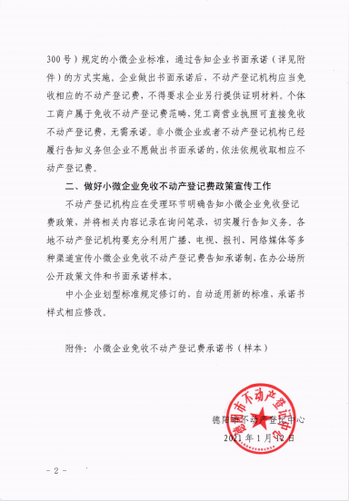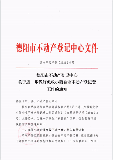 关于进一步做好免收小微企业不动产登记费工作的通知(德市不动产登(2021)6号)