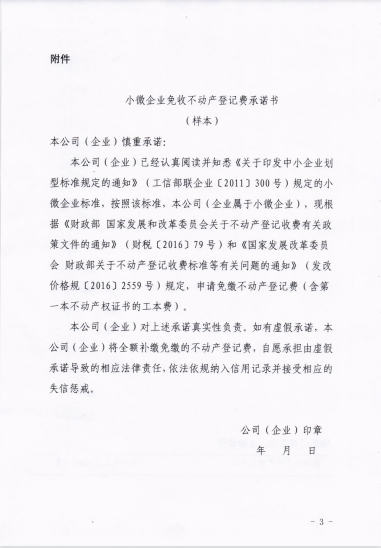 小微企业免收不动产登记费承诺书(样本)